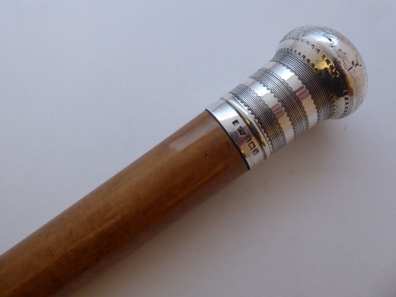 Large Walking Stick Cane 1923 Hallmarked Solid Silver Pommel Malacca Shaft