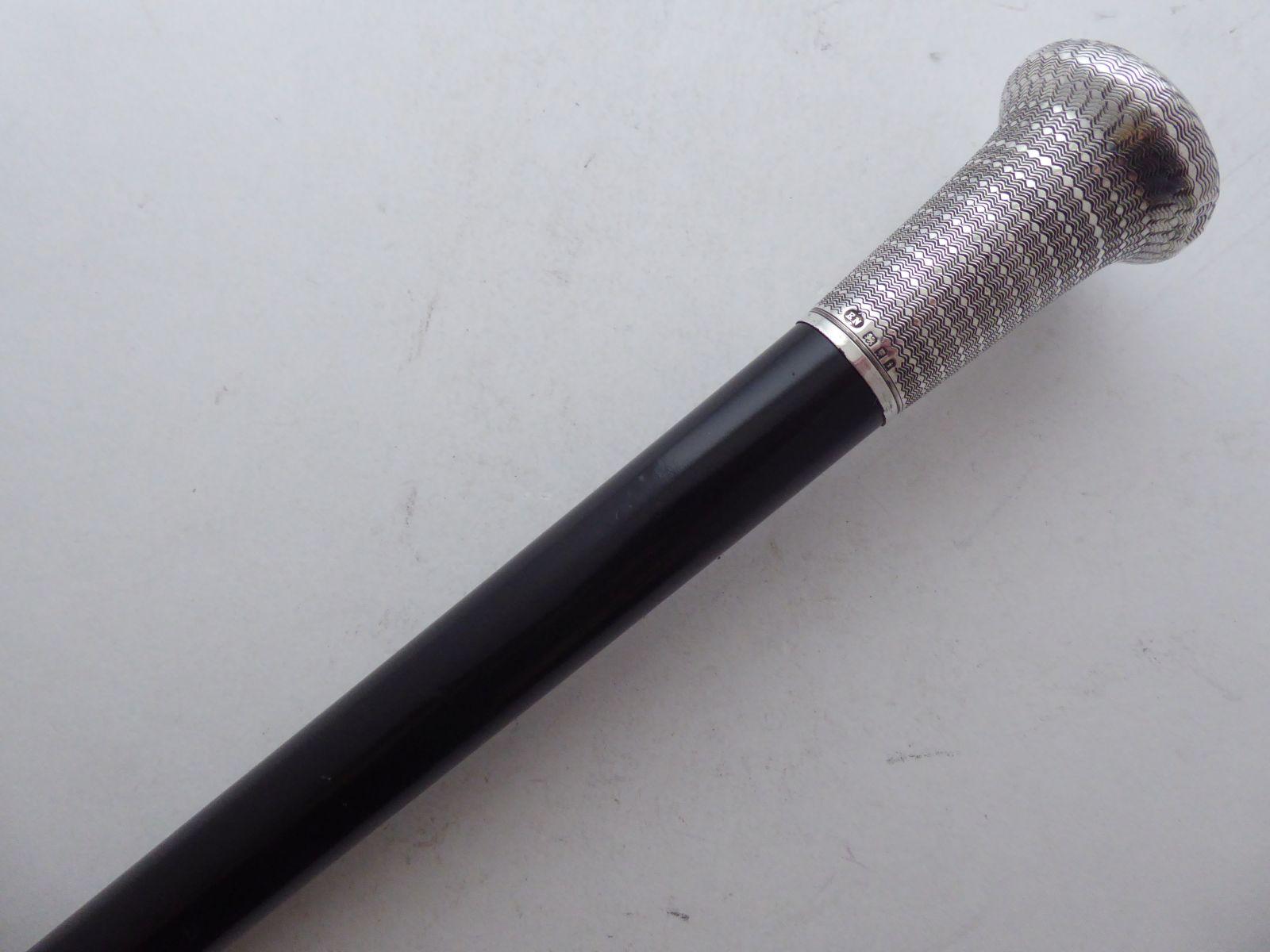 Large Walking Stick Cane London 1924 Solid Silver Pommel Ebony Shaft E Newman