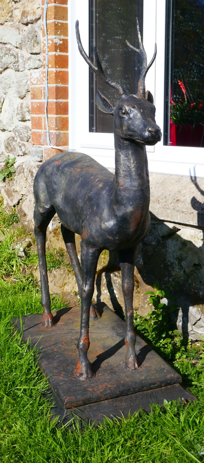 Large Weather Worn Cast Iron Statue of a Young Stag,