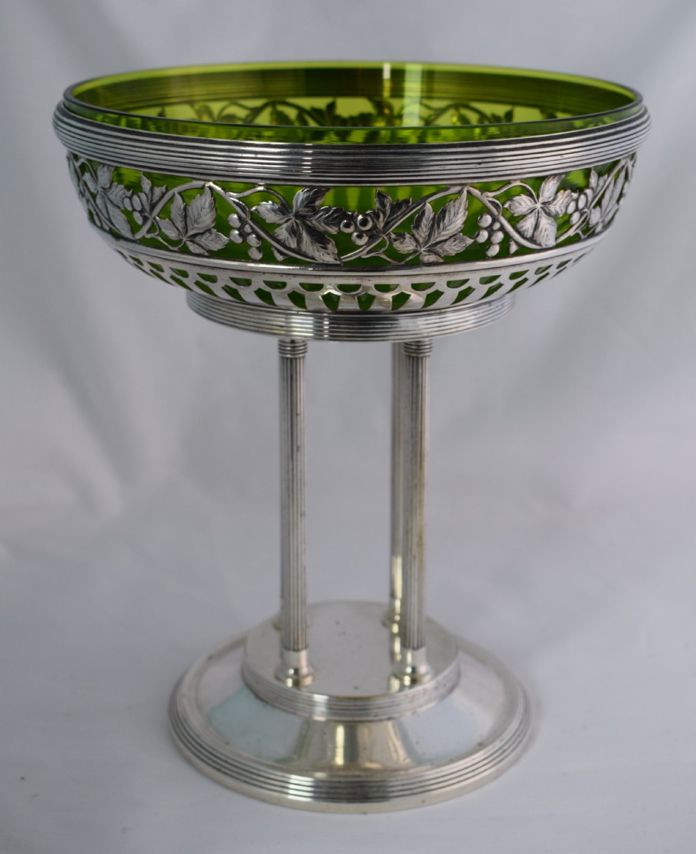 Large Wmf Silver Plated Centrepiece Green Glass Liner Art Nouveau Fruiting Vine Fruit Bowl