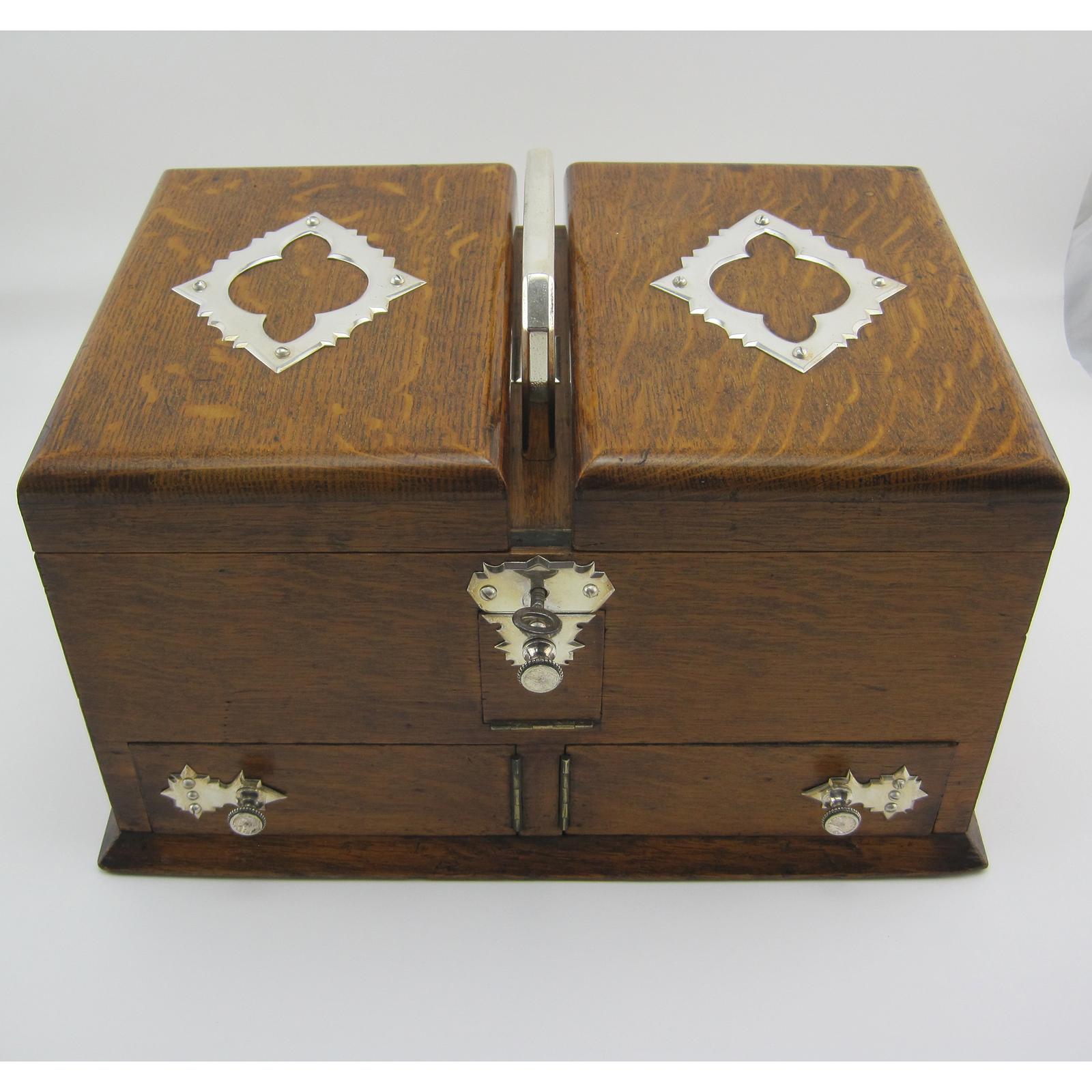 Large Wood and Silver Plated Locking Cigar or Smokers Box (1 of 7)