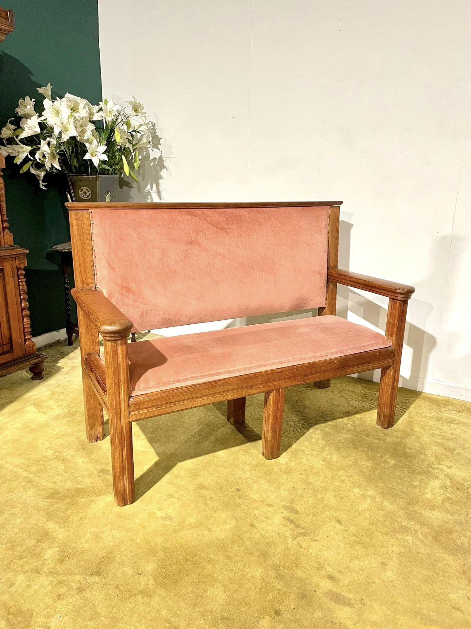 Large Wooden Pitch Pine Upholstered Bench (1 of 12)