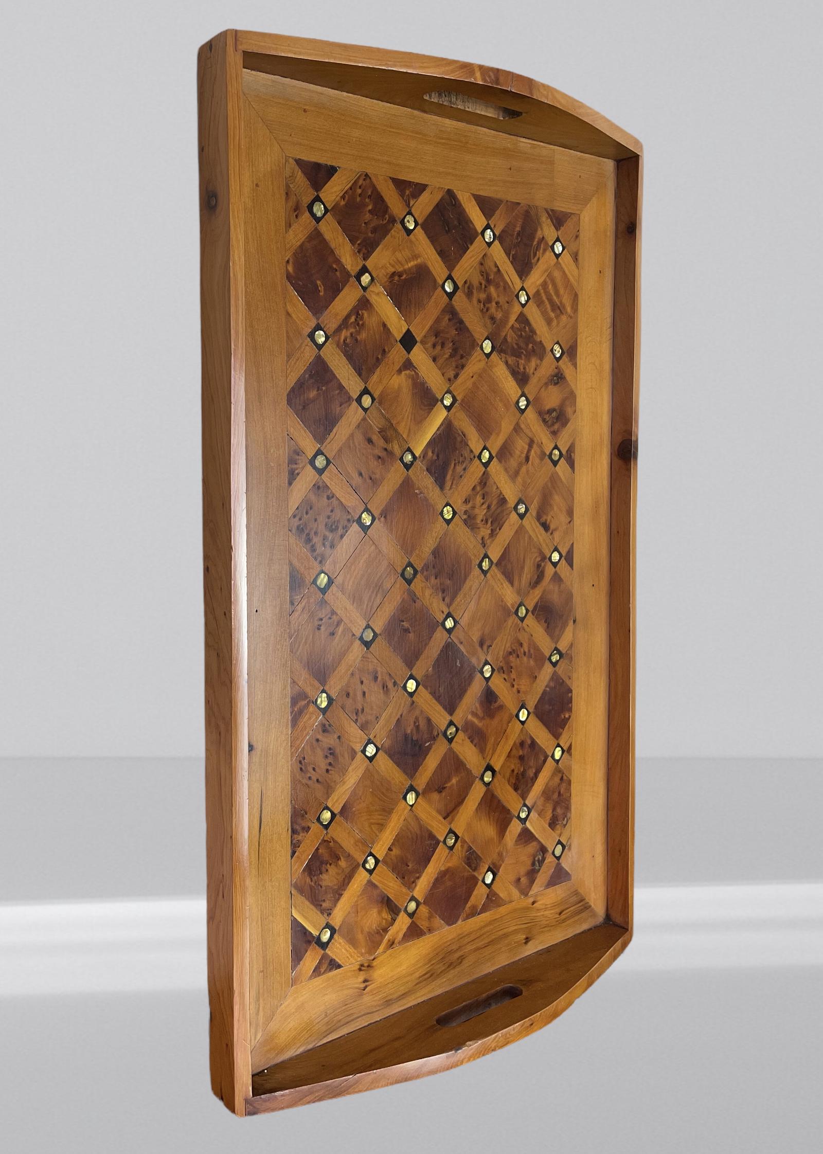 Large Wooden Tray Thuya Burl Handcrafted Inlaid Mother of Pearl Serving Tray