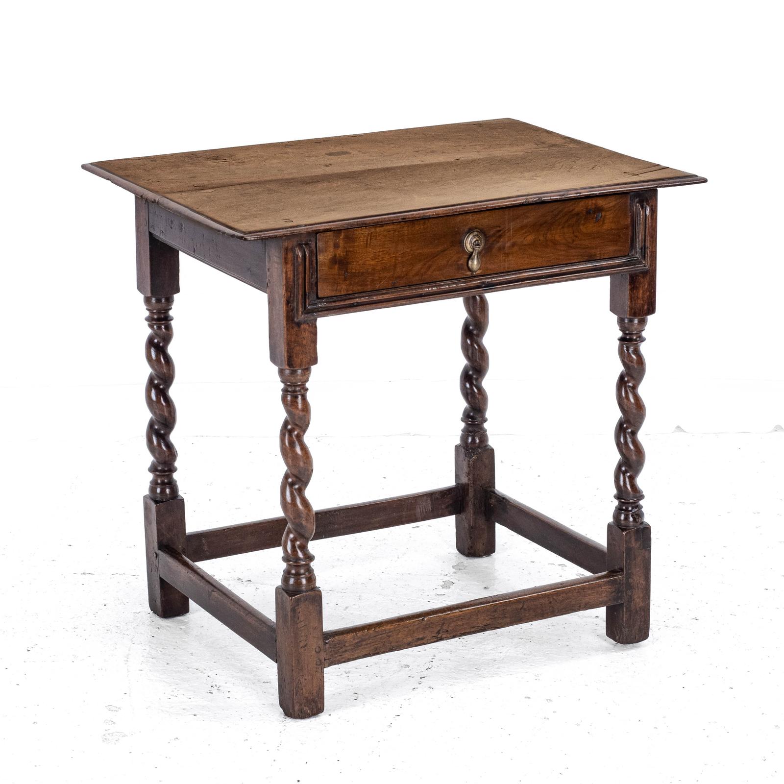 Late 17th Century Walnut Barley Twist Side Table with Drawer / Carolean Country Small Occasional Lamp