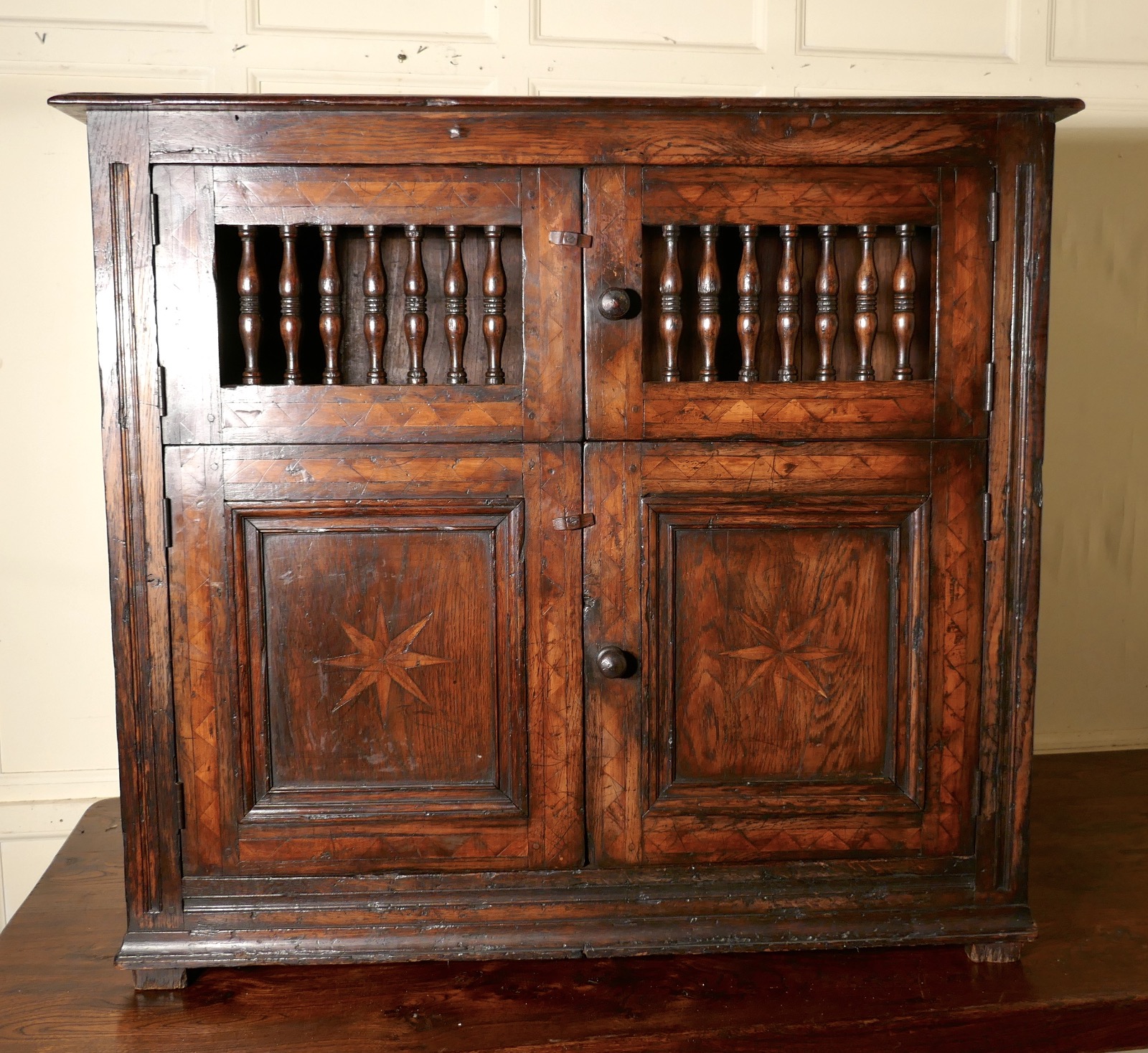 Late 18th Century Antique Inlaid Elm Food Cupboard, Bread Hutch