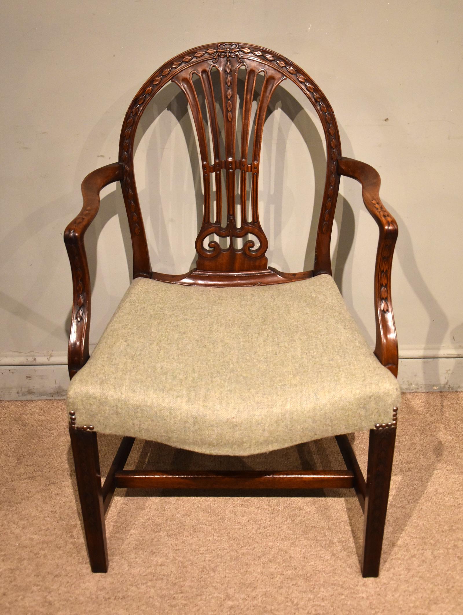 Late 18th Century Hepplewhite Carved Mahogany Armchair (1 of 6)