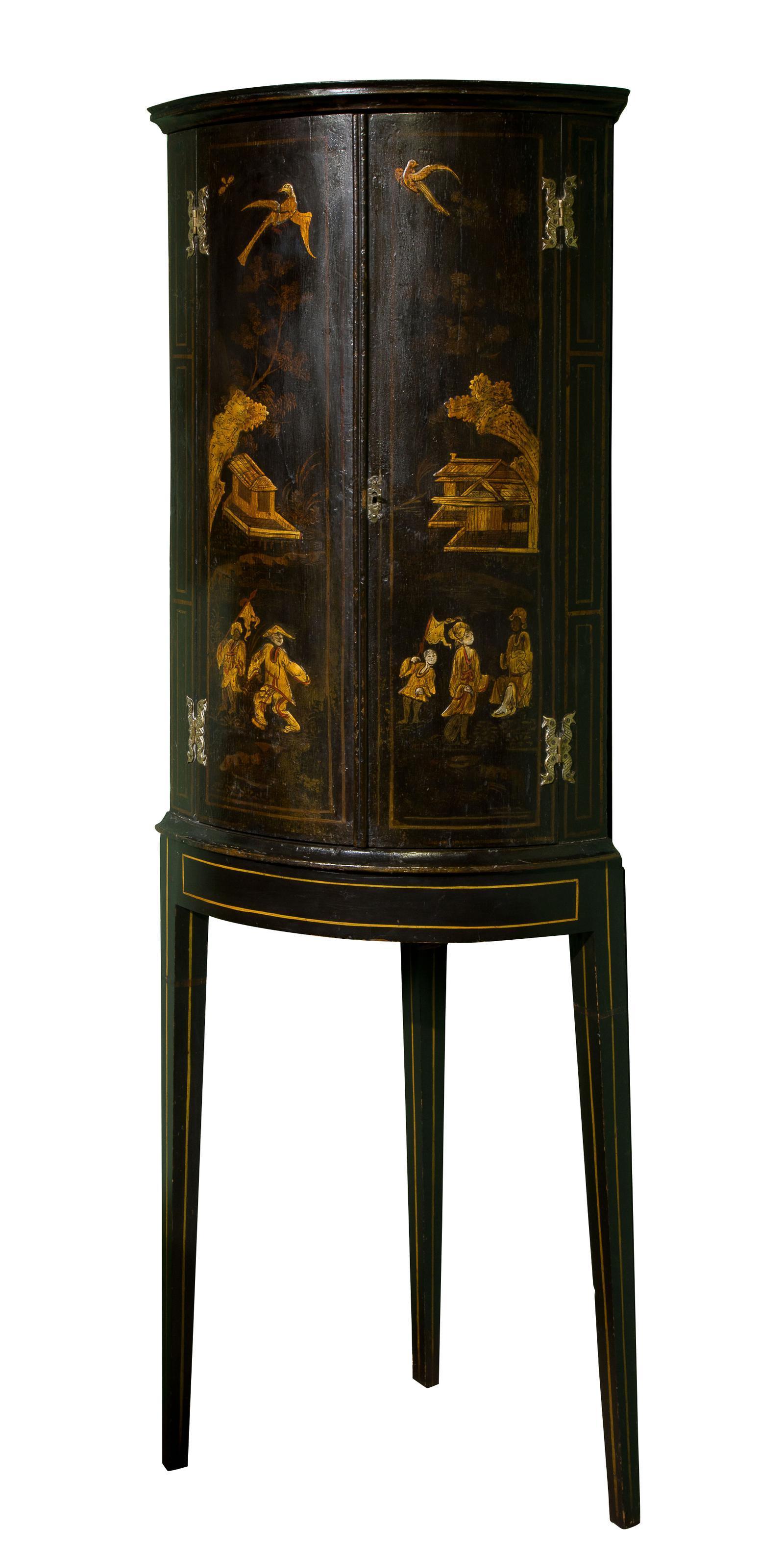 Late 18th Century Lacquered Chinoiserie Decorated Corner Cupboard