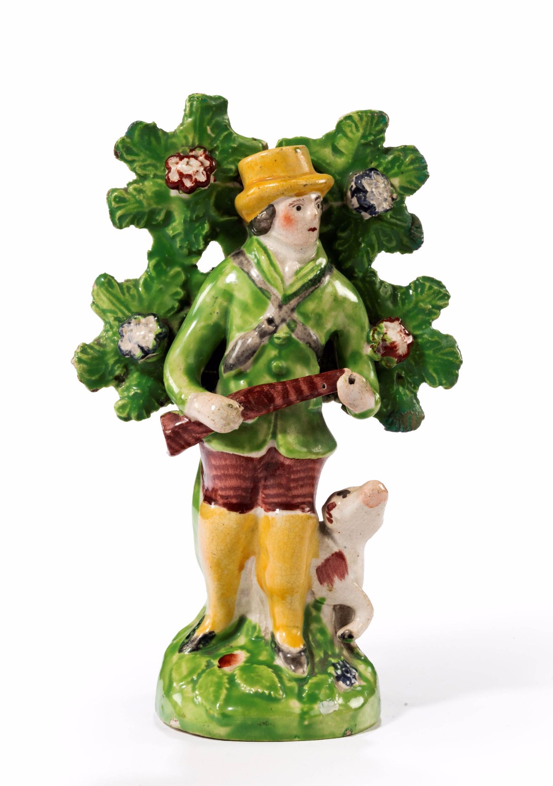 Late 18th Century Staffordshire Figure of a Musician with a Dog