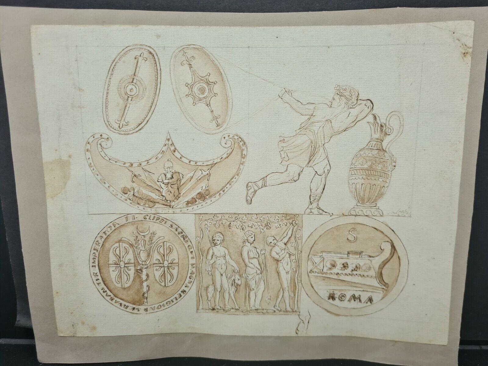 Late 18th Century Vignette of Rome Subjects on Paper Laid to Paper