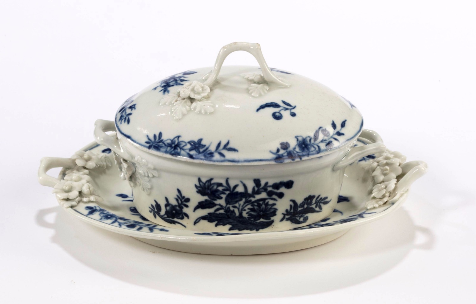Late 18th Century Worcester Blue & White Printed Oval Butter Tub