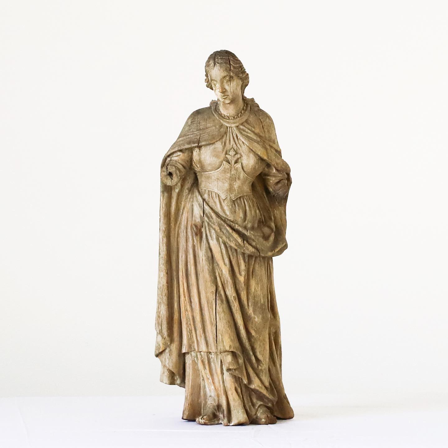 Late 18th / Early 19th Century Pine Carved Female Figure in Cloak