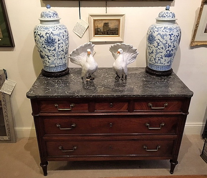 We are primarily a web based business. We have high quality Furniture, Art and other Decorative items in two warehouses in Tetbury, Gloucestershire and Eves & Samuel, Lambourn Woodlands, Berkshire and a private collection London . We display the widest variety of antiques at all price levels, including Furniture , Paintings and other Decorative items. Not all our items are in one location, so please call or email to view (enquiries@marlboroughantiques.com) or from our Contact page to avoid disappointment. Please view our Terms and conditions if needed at http://www.marlboroughantiques.com/terms.php. We are very happy to discuss with clients their needs and to provide a sourcing service. We can advise on the acquisition of pieces in all areas of the fine and decorative arts, assisting clients in their search for individual pieces or for a particular item. We can source and acquire all the relevant items on your behalf. If you have queries regarding this or any intended purchase please contact us. All items can be delivered either by postal service or by trusted and fully insured couriers; we use both for the UK market and for overseas delivery. Please inquire by email or phone to obtain a quote for delivery options. Items are described as Excellent - A1 Condition no faults, Very Good - very good condition with only very minor cosmetic issues if at all and consistent with age, Good - in good overall condition with some ageing, marks and wear consistent with age.