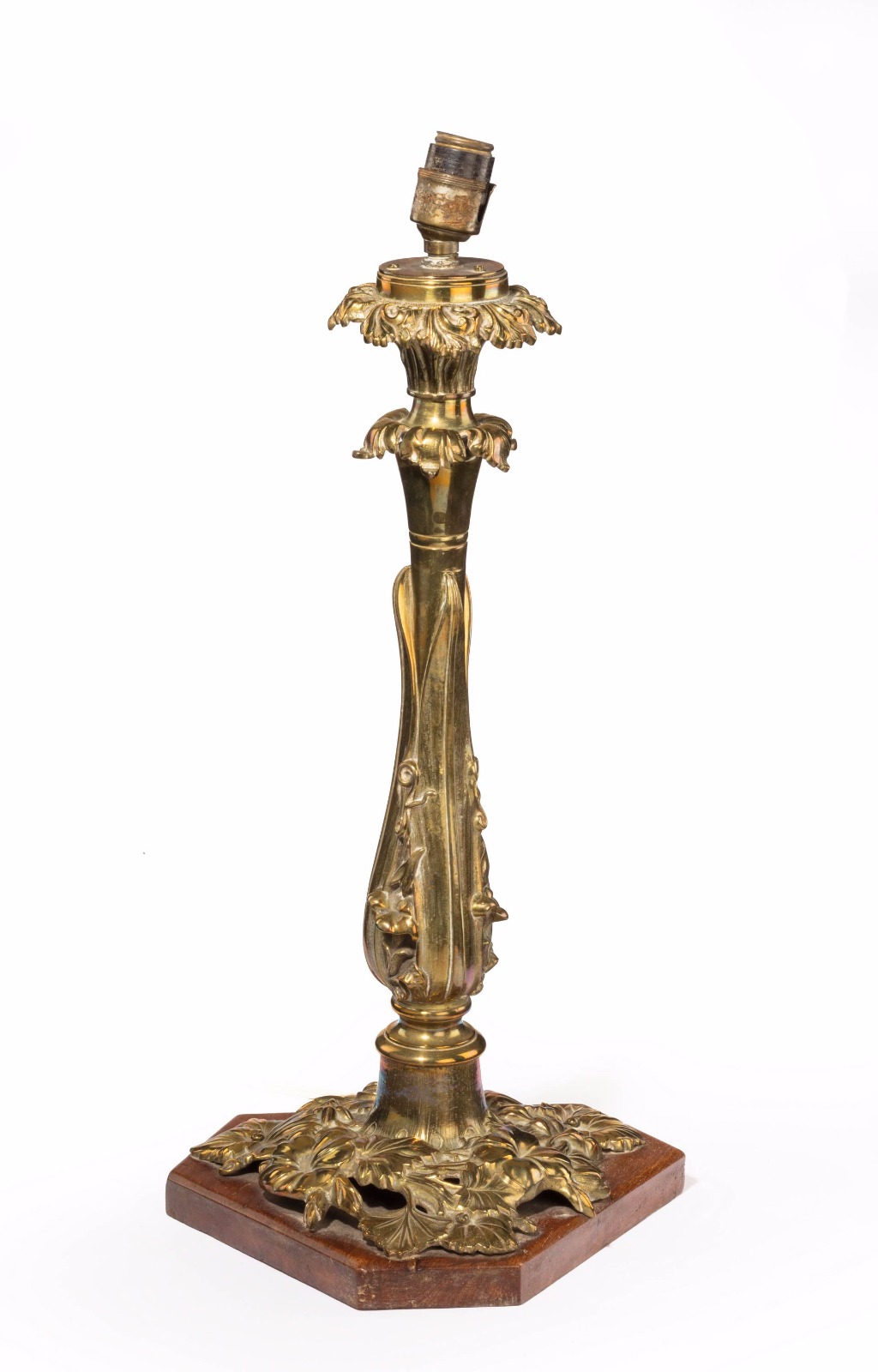 Late 19th Century Bronze Cast Lamp Base on a Triform Wooden Base