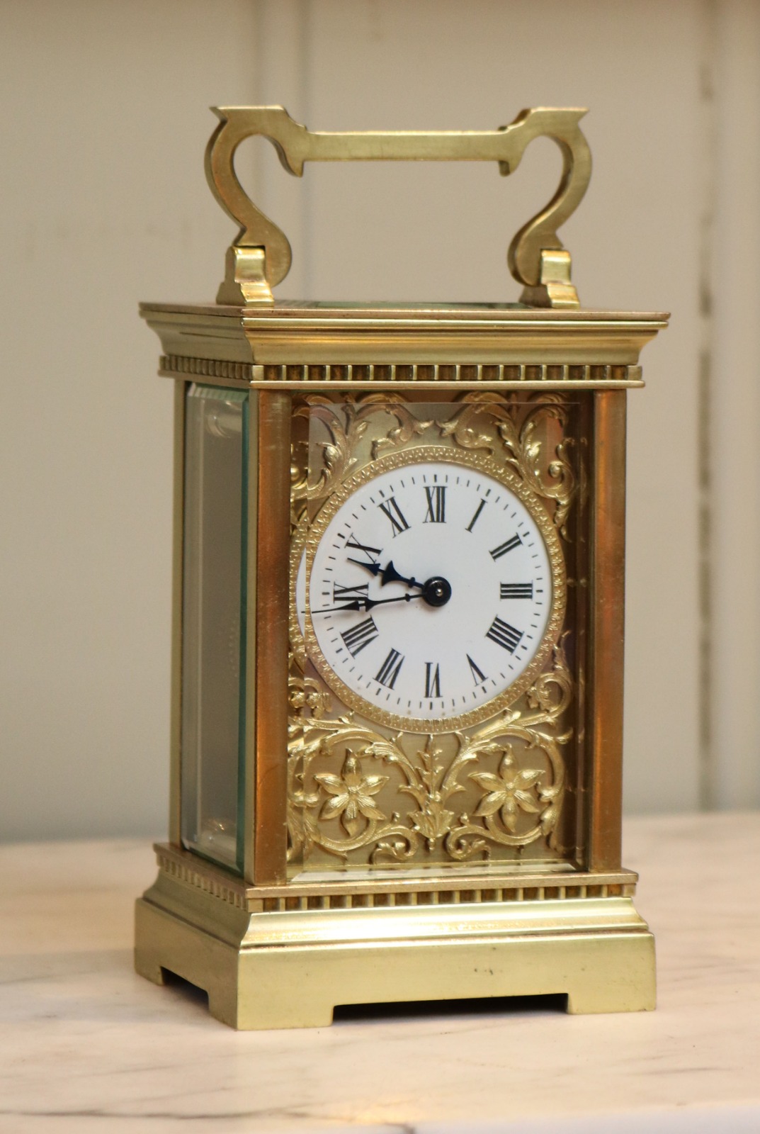 Late 19th Century Carriage Clock with Ornate Dial Mask, France C.1890 (1 of 1)