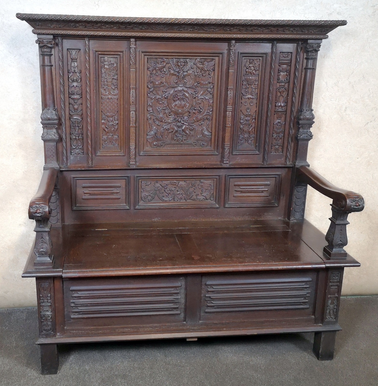 Late 19th Century Carved Oak Hall Bench / Settle (1 of 1)