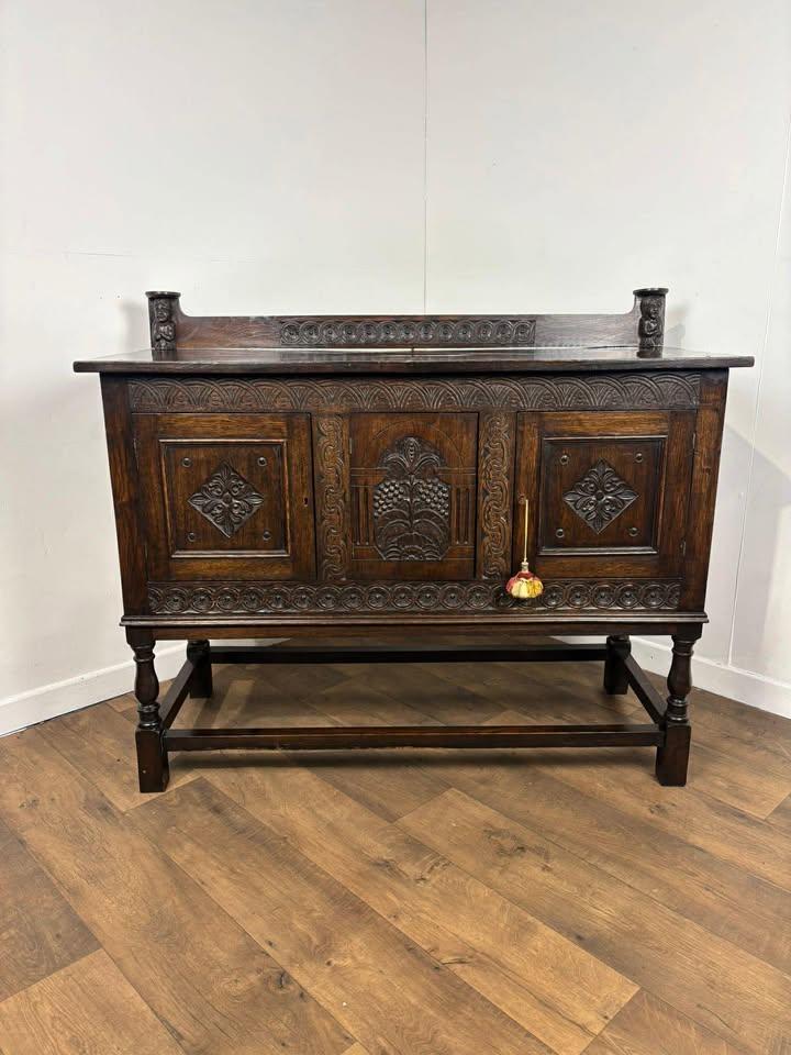A strong, decorative and practical antique sideboard with plenty of storage and striking visual appeal.