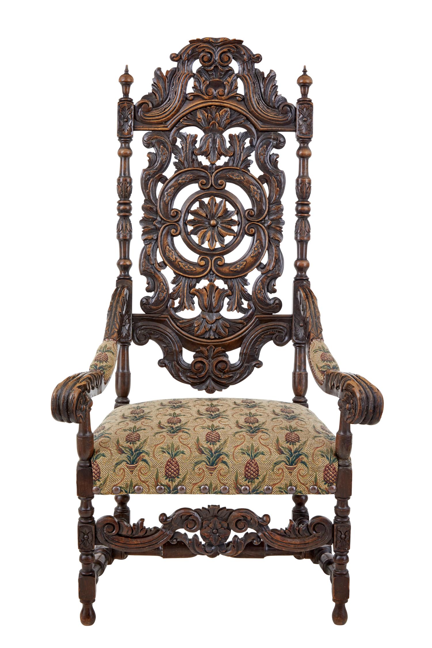 Late 19th Century Carved Walnut Carolean Design Armchair