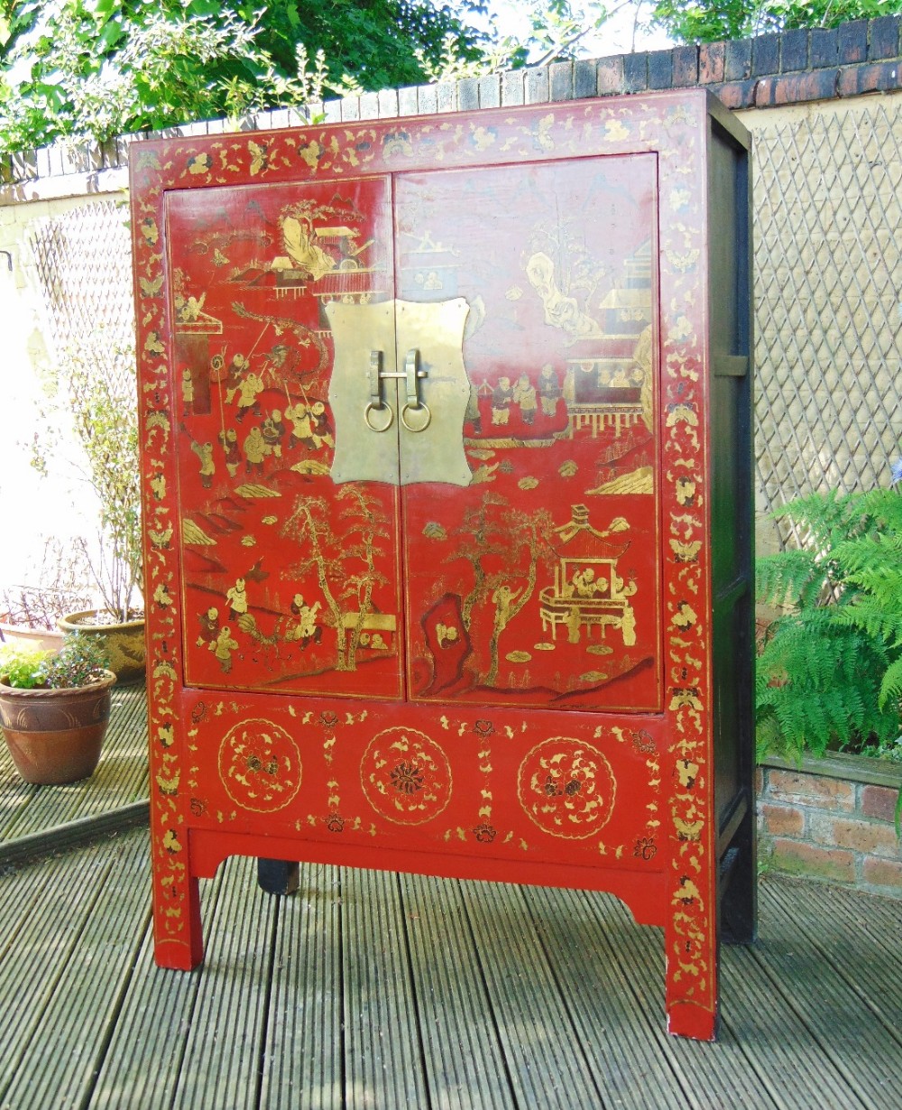 Late 19th Century Chinese Red Lacquer & Gilded Wedding Cabinet (1 of 1)