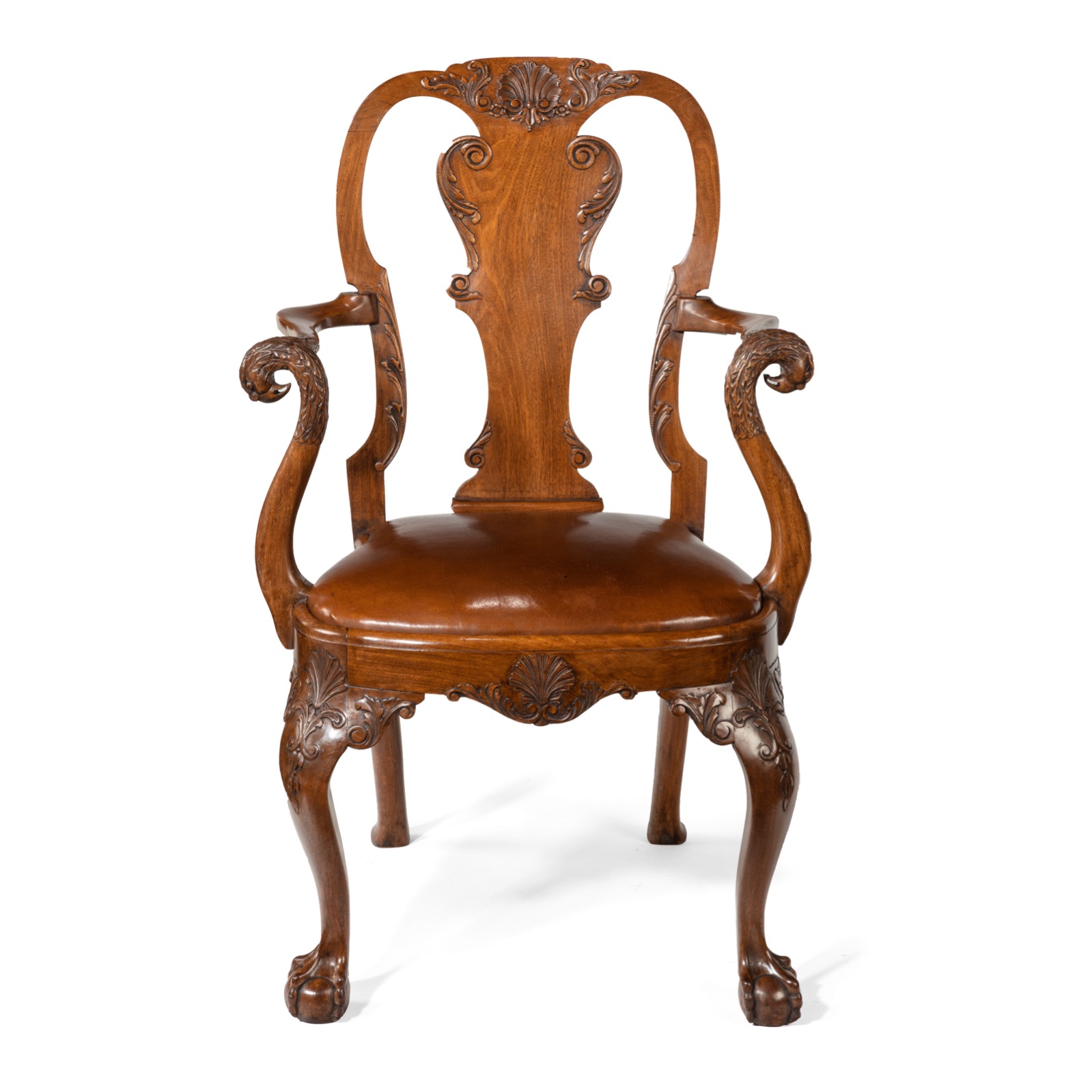 Late 19th Century Finely Carved Eagle Head Walnut and Leather Desk Armchair (1 of 13)