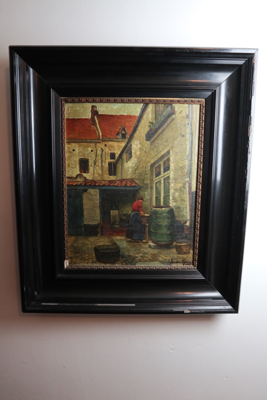 Late 19th Century Flemish School, Heavy Framed Oil On Canvas Painting, by Romain Van Den Brugge - 'Wash Day'. (1 of 20)