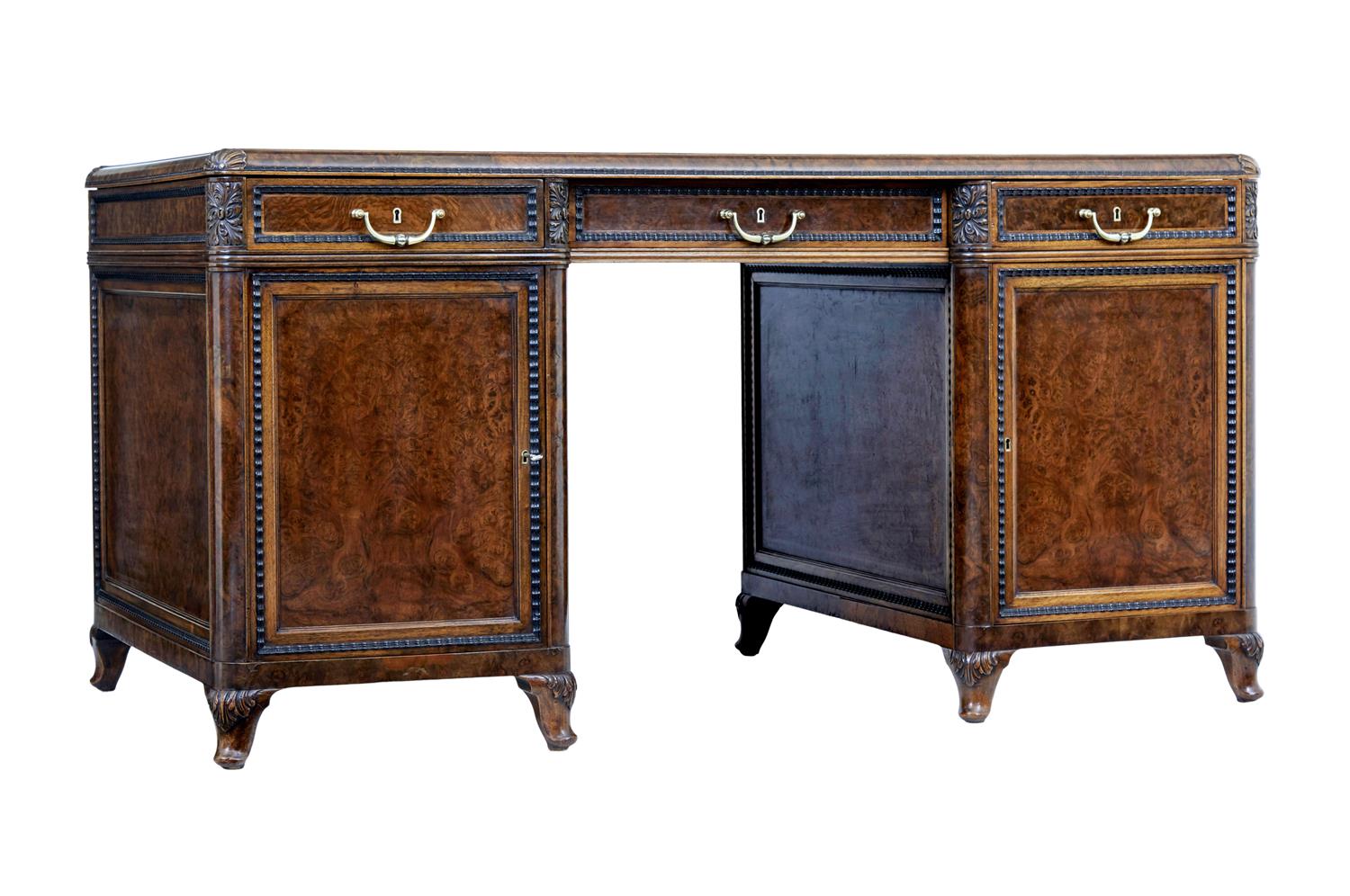 Late 19th Century French Burr Walnut Pedestal Desk (1 of 10)