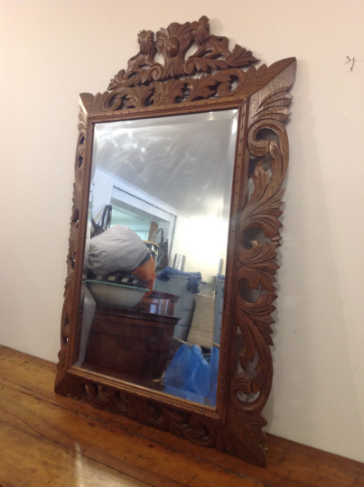 Late 19th Century French Carved Rectangular Solid Oak Acanthus Armorial Wall Mirror with Bevelled Plate
