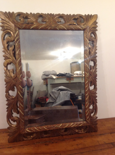 Late 19th Century French Carved Rectangular Solid Oak Ancanthus Gilt Gilded Wall Mirror with Bevelled Plate