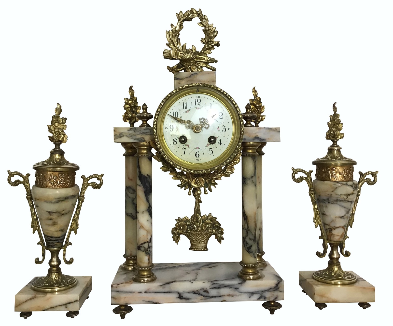 Late 19th Century French Gilt Bronze & Marble Clock Garniture