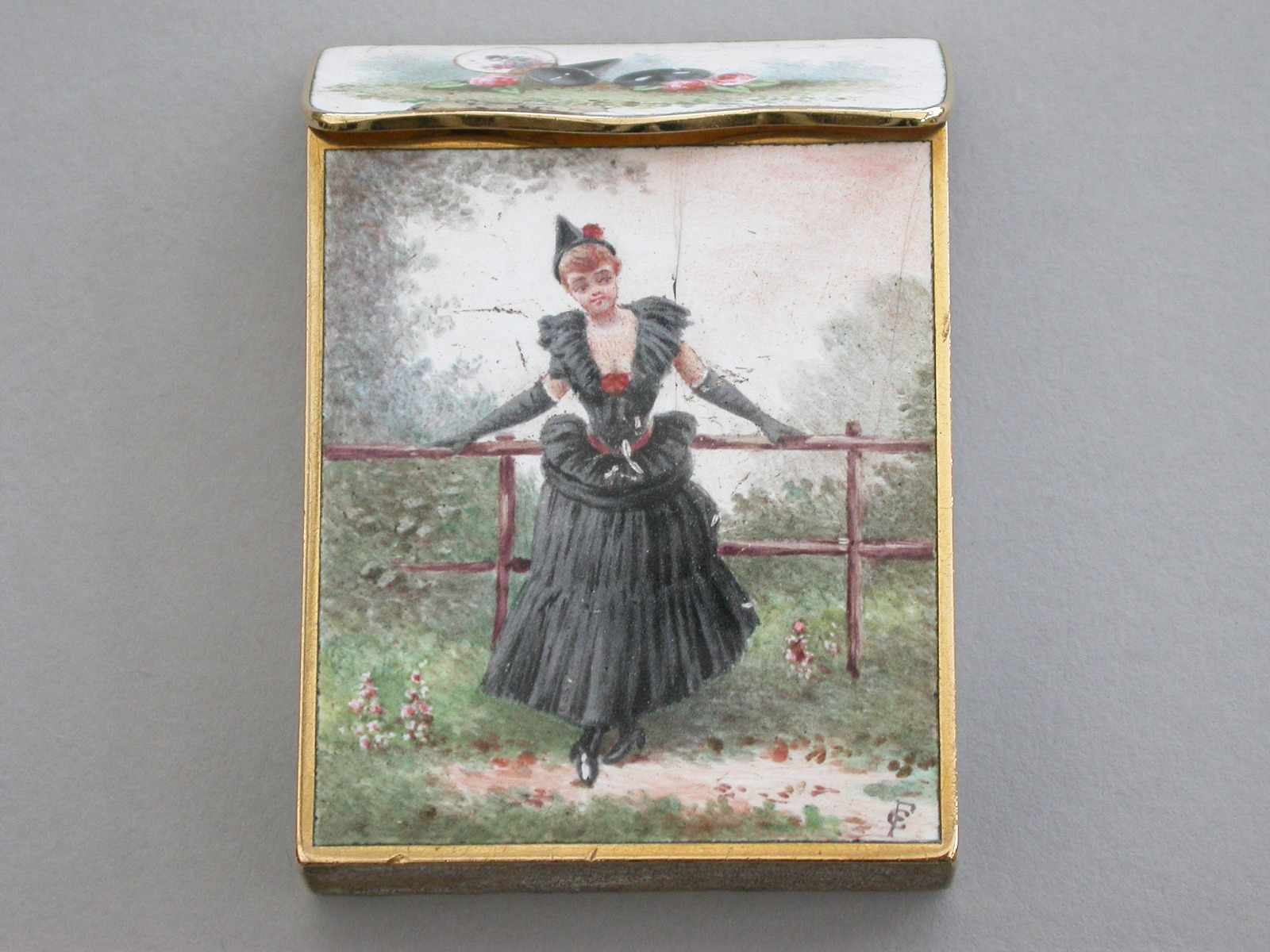 Late 19th Century French Gold & Enamel Vesta Case "Sappho" Unmarked C.1900
