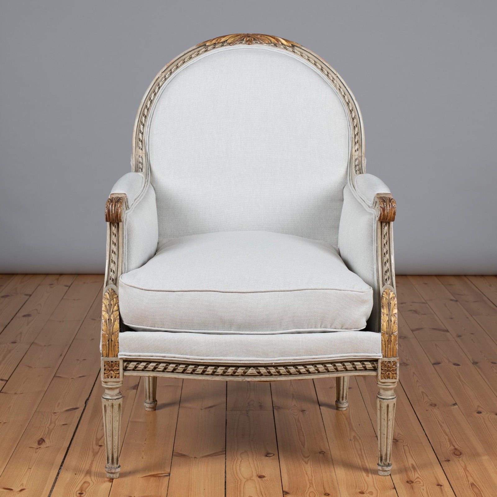 Late 19th Century French Louis XVI Style Painted & Gilt Bergere Armchair (1 of 7)