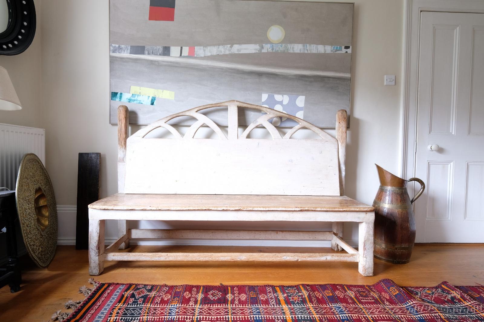 Late 19th Century Gothic Painted Pine Hall Bench