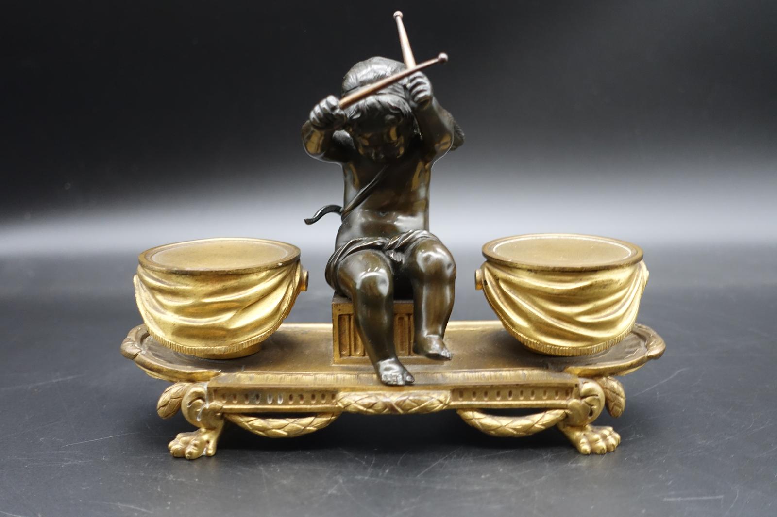 Late 19th Century Heavily Cast Bronze & Gilt Bronze Inkwell