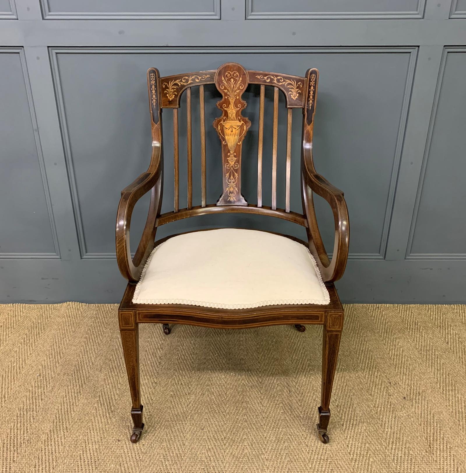 Late 19th Century Inlaid Mahogany Armchair