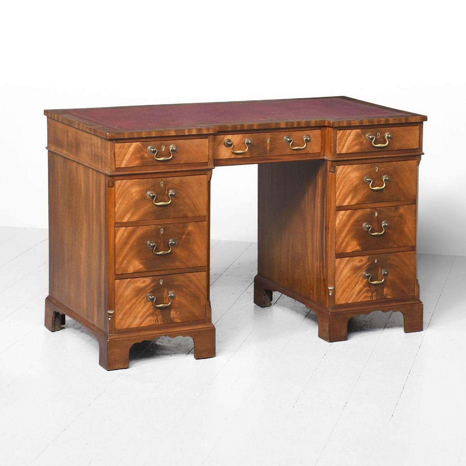 Late 19th Century Mahogany Breakfront Pedestal Desk with Burgundy Leather Writing Surface