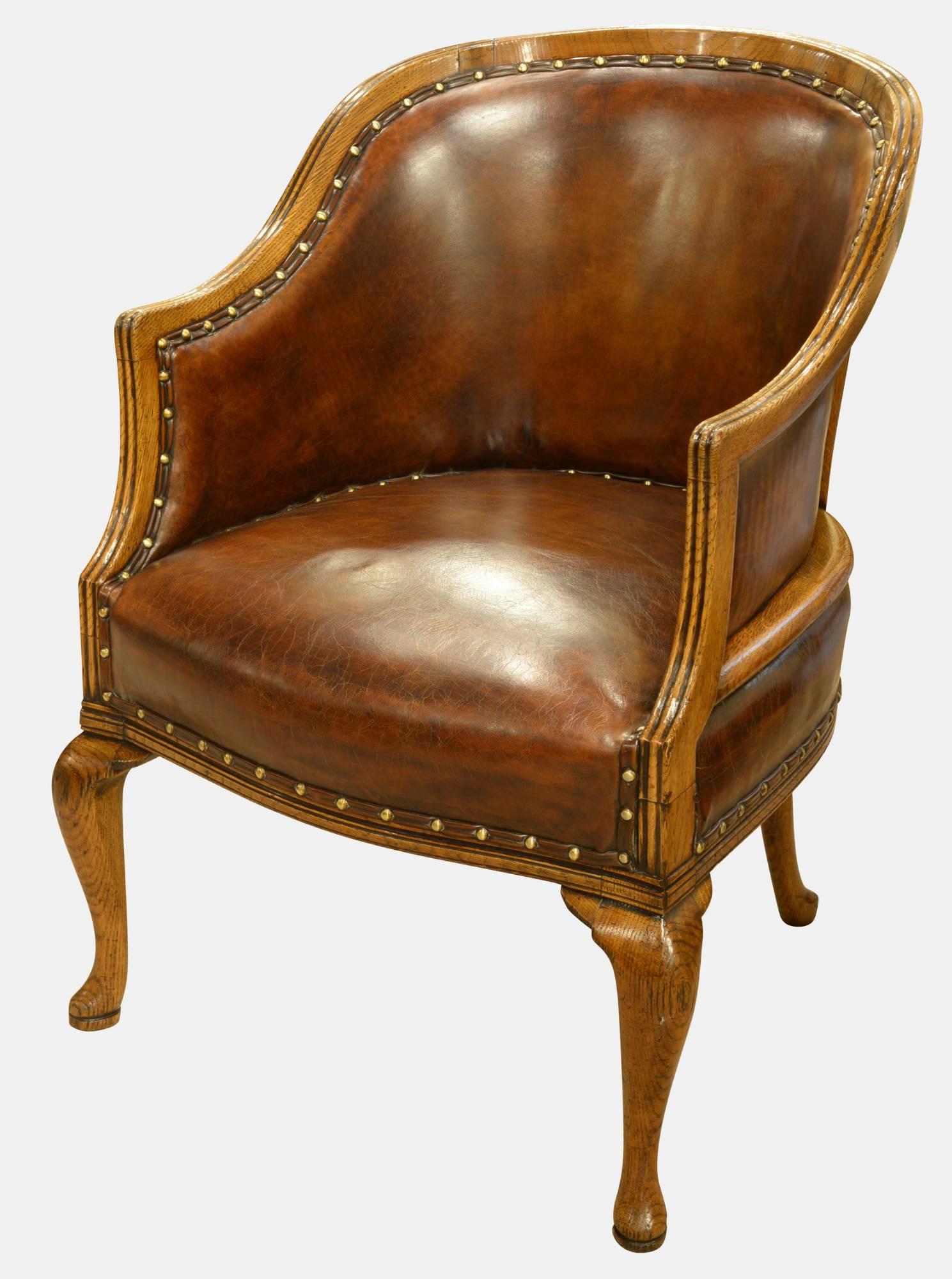 Late 19th Century Oak & Leather Tub Chair (1 of 1)