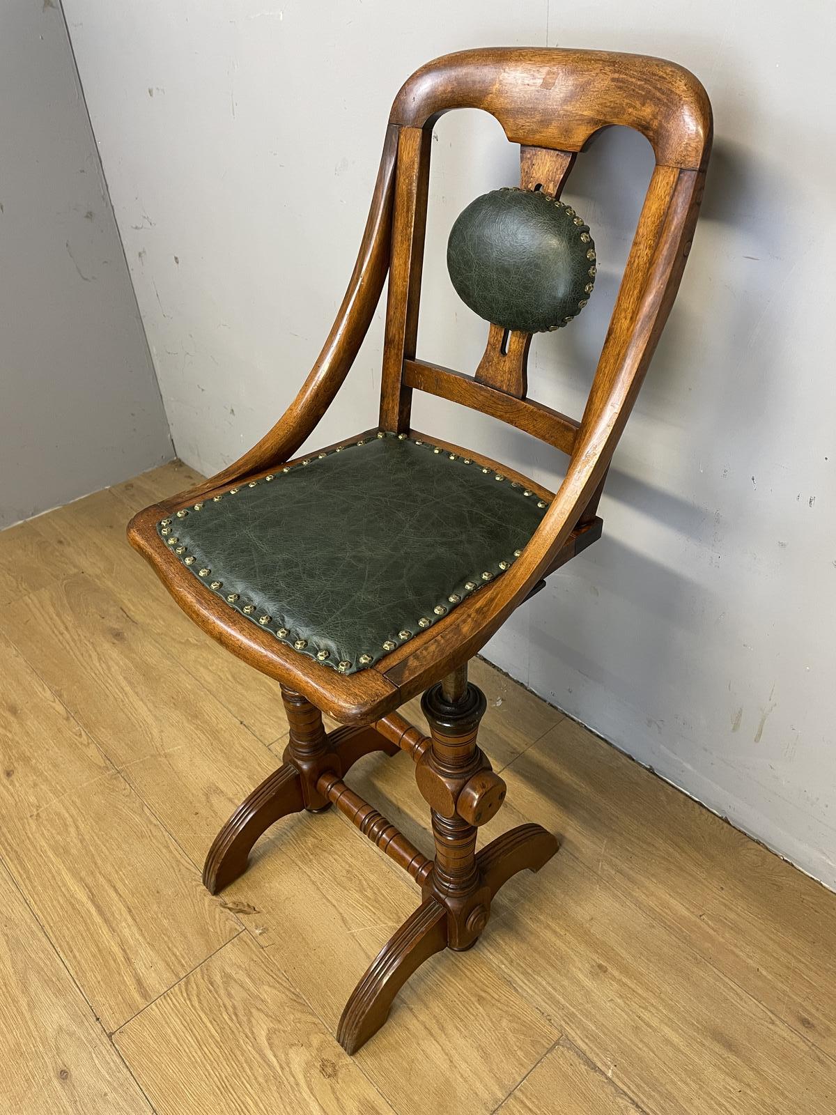 Late 19th Century Patent Music Chair in Green Leather