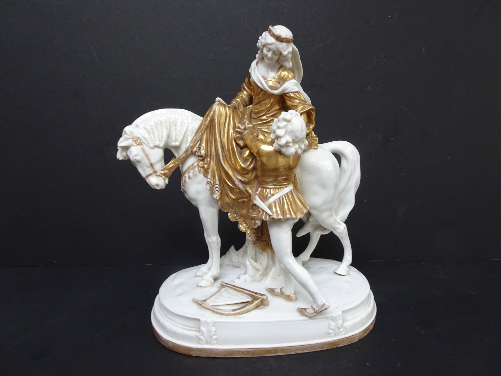 Late 19th Century Porcelain Figural Group of a Maiden on a Horse. Probably Italian
