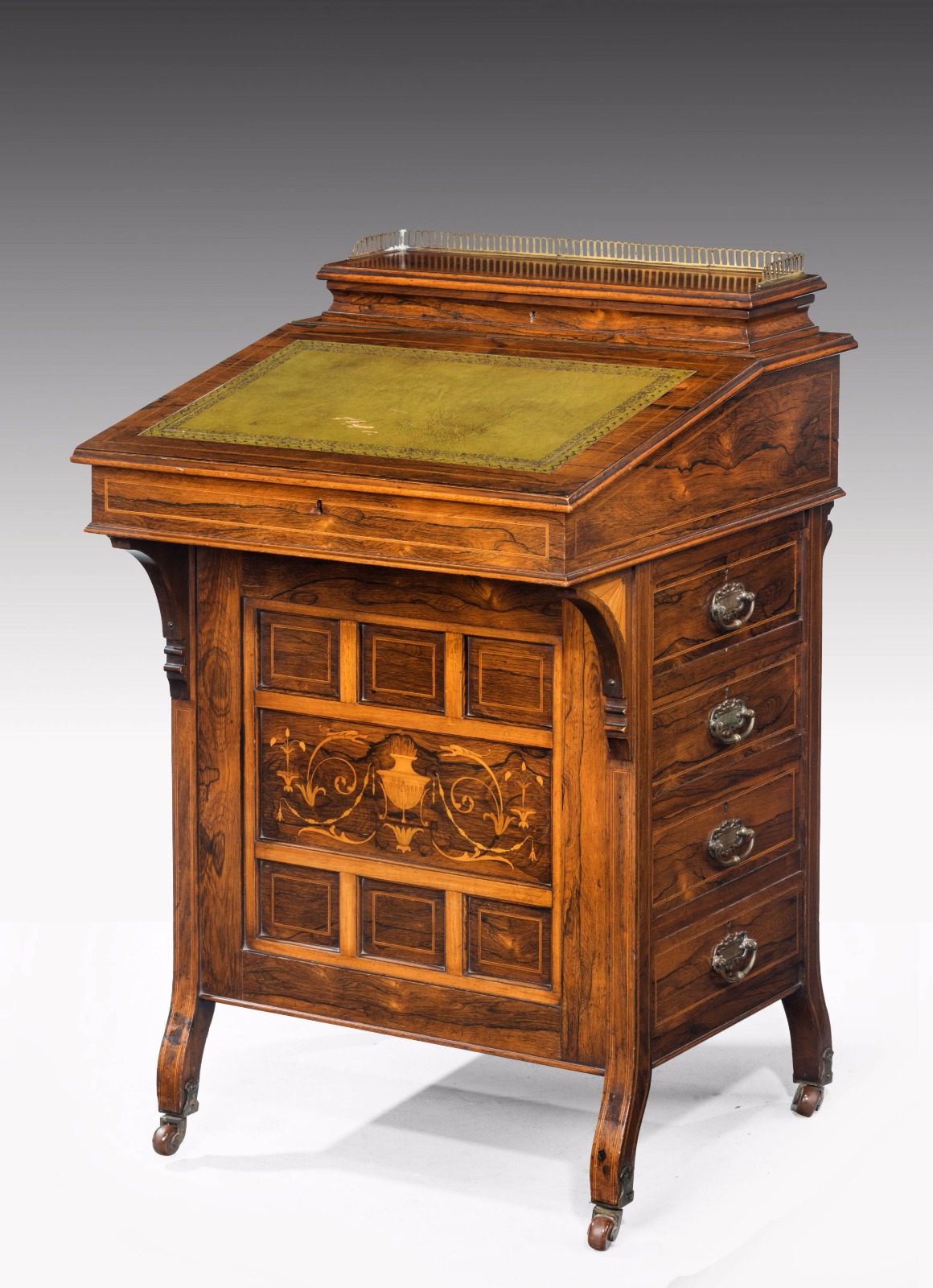 Late 19th Century Rosewood Davenport Desk with a Marquetry Panel