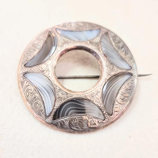 Late 19th Century Scottish Sterling Silver & Banded Agate Plaid, Kilt Brooch