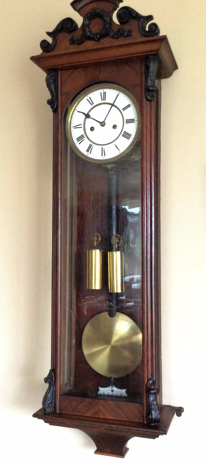 Late 19th Century Twin Weight Vienna Regulator Style Mahogany Wall Clock (1 of 1)