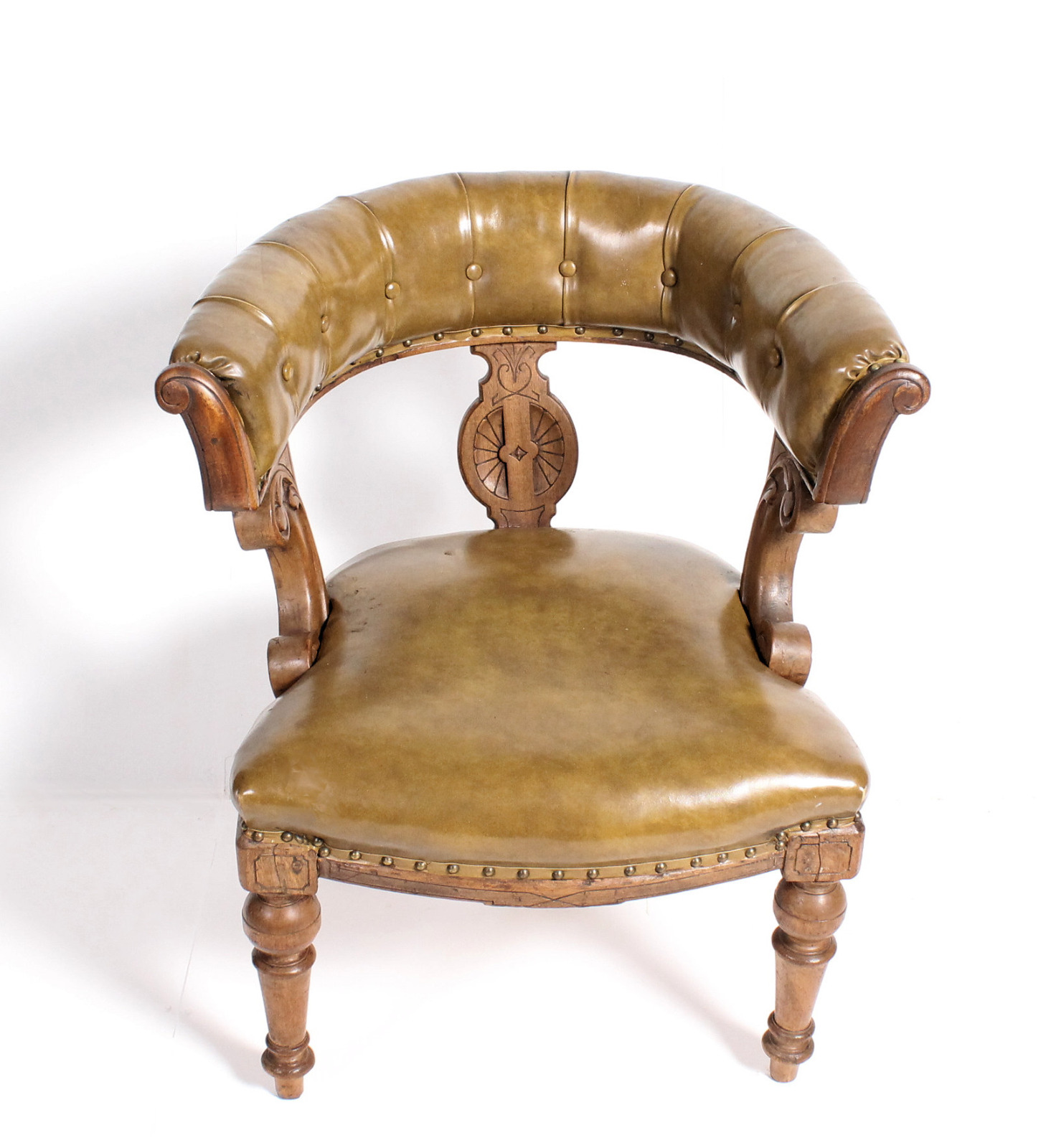 Late 19th Century Victorian Antique Leather Mahogany Captains Desk Armchair