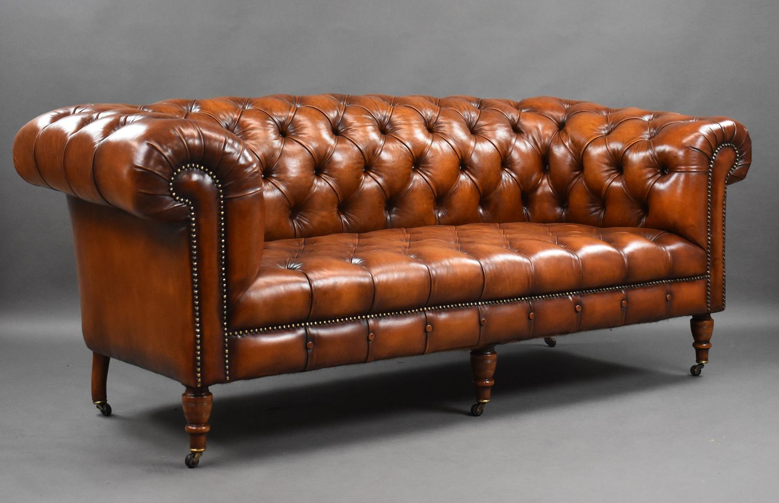 Late 19th Century Victorian Brown Leather Chesterfield Sofa