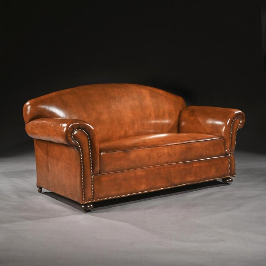 Late 19th Century Victorian Leather Upholstered Drop Arm Sofa