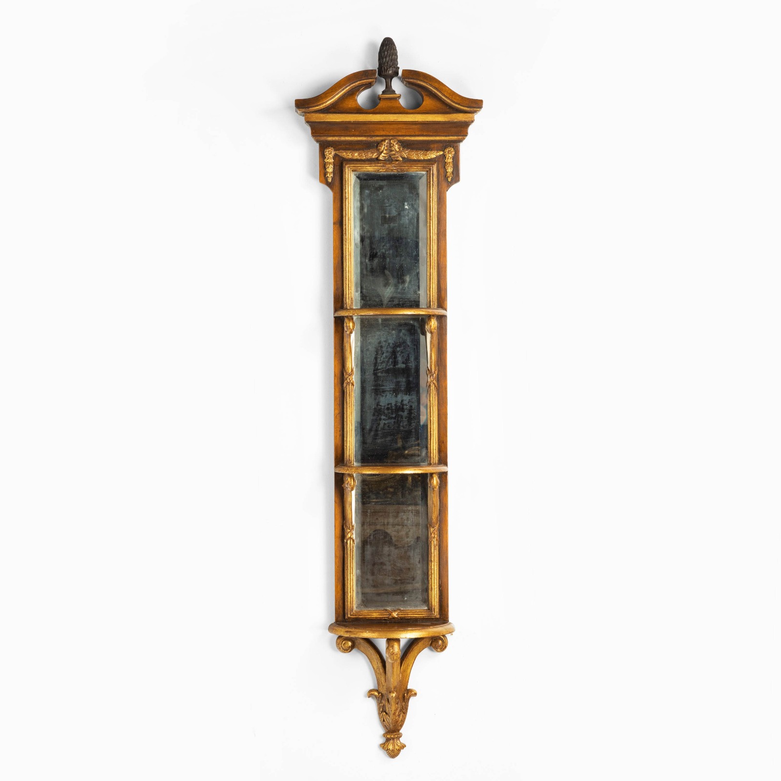 Late 19th Century Walnut & Parcel Gilt Slender Wall Mirror