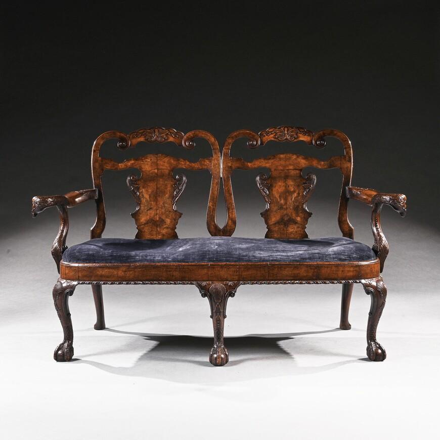 Late 19th Century Walnut Twin Chair Back Sofa - George II Design