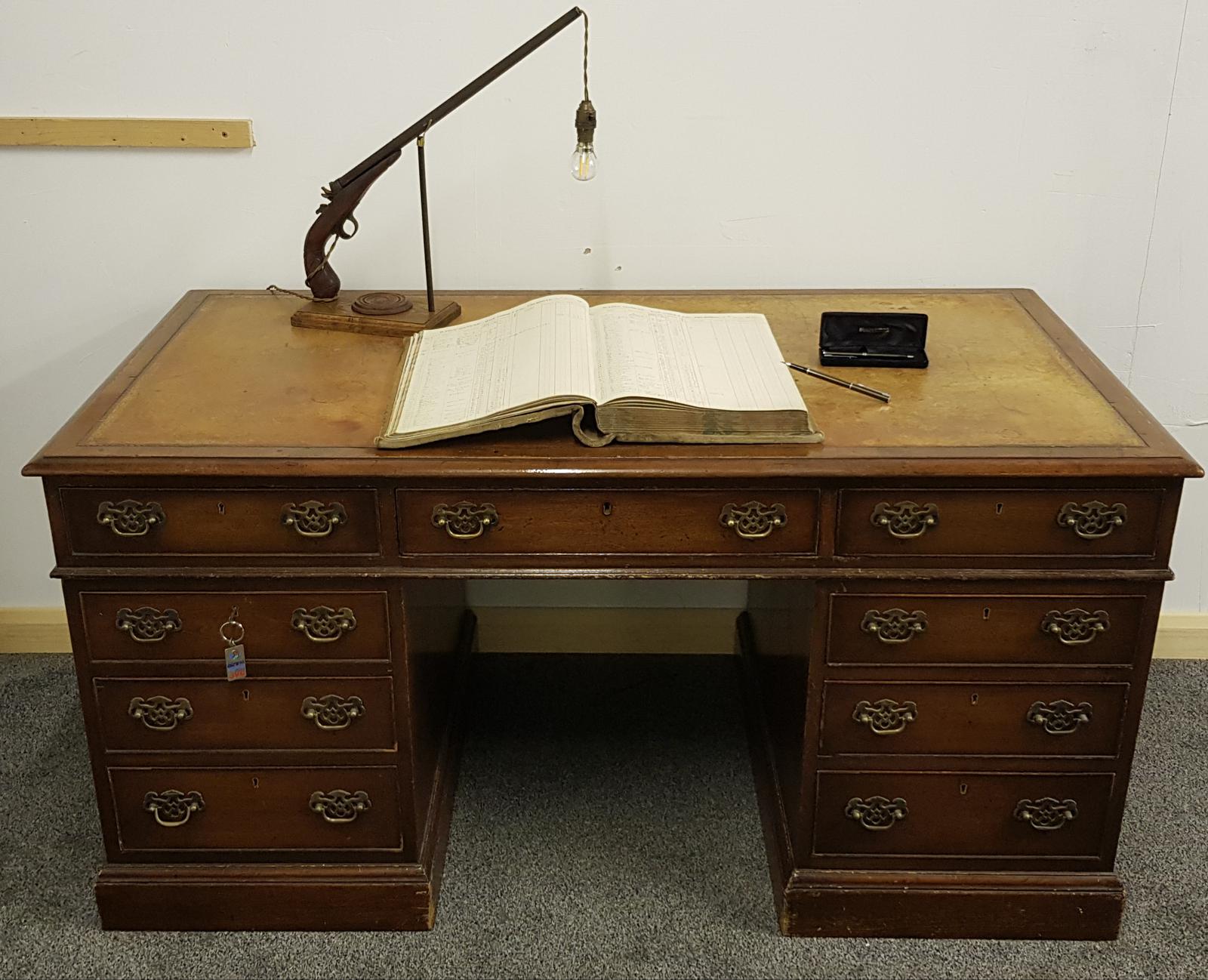 Late 19th / Early 20th Century Pedestal Desk with Leather Top