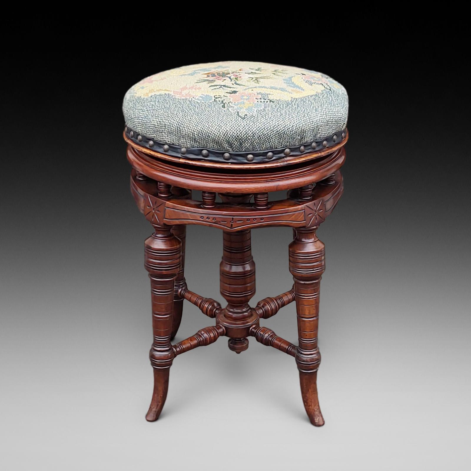 Late 19thc Circular Walnut Revolving Piano Stool
