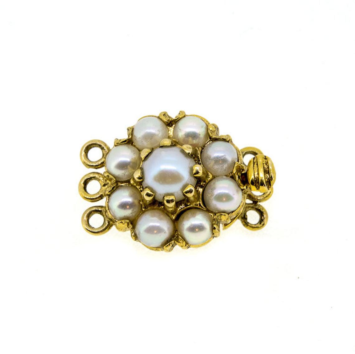 Late 20th Century 9ct Yellow Gold Three Row Pearl Cluster Clasp