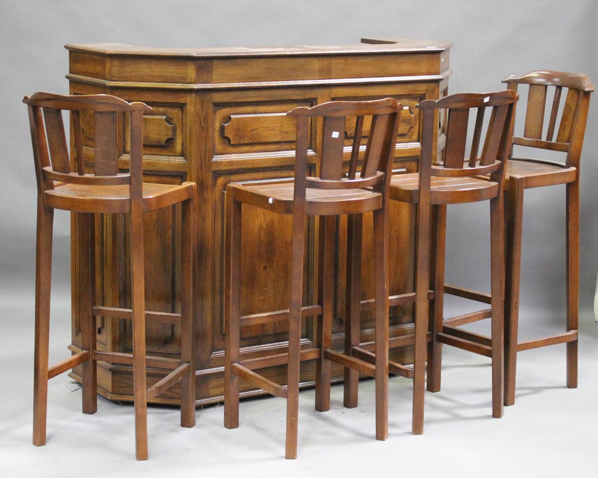 Late 20th Century Oak Bar Counter and Four Stools