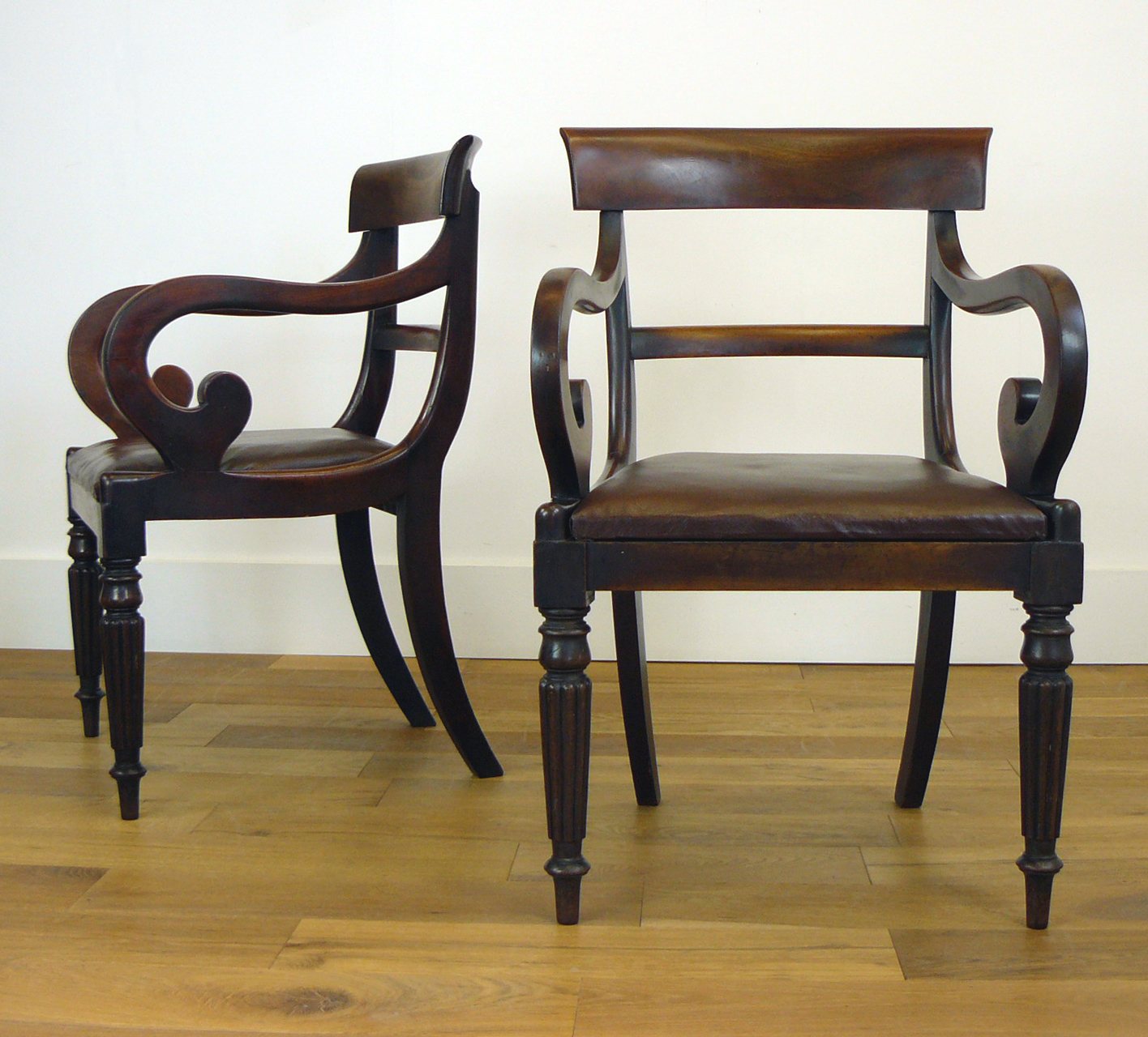 Late Georgian Antique Scroll Armed Library Desk Chair (we have 2)